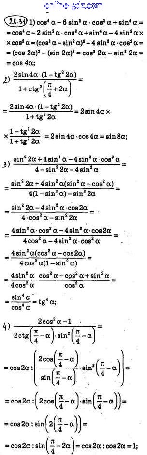 Готовые домашние задания по Алгебре за 10 класс Учебник Мерзляк, Номировский Алгоритм успеха Углубленный уровень 2019 - §26. Формулы двойного, тройного и половинного углов 26.31
