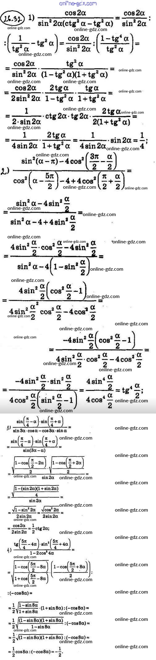Готовые домашние задания по Алгебре за 10 класс Учебник Мерзляк, Номировский Алгоритм успеха Углубленный уровень 2019 - §26. Формулы двойного, тройного и половинного углов 26.32