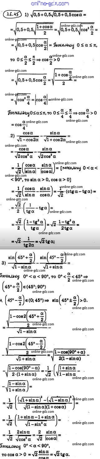 Готовые домашние задания по Алгебре за 10 класс Учебник Мерзляк, Номировский Алгоритм успеха Углубленный уровень 2019 - §26. Формулы двойного, тройного и половинного углов 26.45