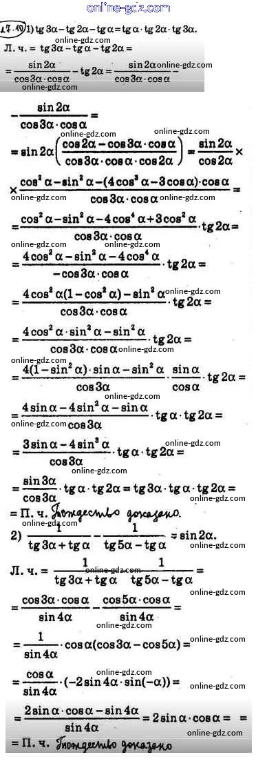 Готовые домашние задания по Алгебре за 10 класс Учебник Мерзляк, Номировский Алгоритм успеха Углубленный уровень 2019 - §27. Формулы для преобразования суммы, разности и произведения тригонометрических функций 27.10