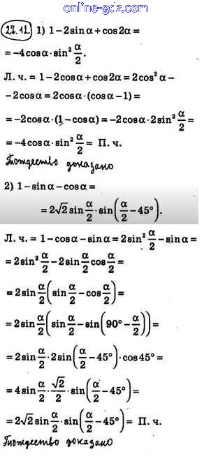 Готовые домашние задания по Алгебре за 10 класс Учебник Мерзляк, Номировский Алгоритм успеха Углубленный уровень 2019 - §27. Формулы для преобразования суммы, разности и произведения тригонометрических функций 27.12