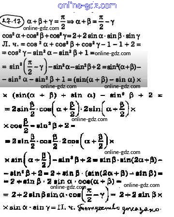 Готовые домашние задания по Алгебре за 10 класс Учебник Мерзляк, Номировский Алгоритм успеха Углубленный уровень 2019 - §27. Формулы для преобразования суммы, разности и произведения тригонометрических функций 27.17