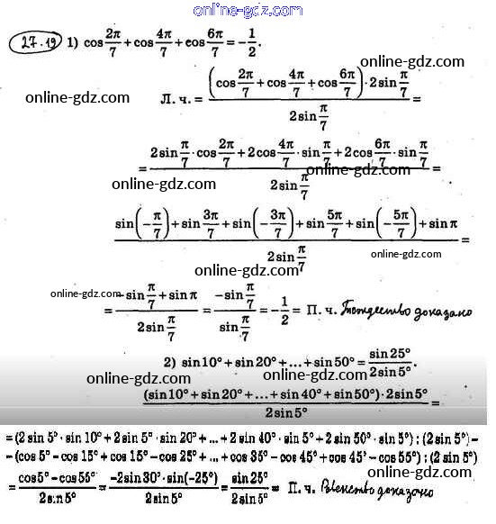 Готовые домашние задания по Алгебре за 10 класс Учебник Мерзляк, Номировский Алгоритм успеха Углубленный уровень 2019 - §27. Формулы для преобразования суммы, разности и произведения тригонометрических функций 27.19