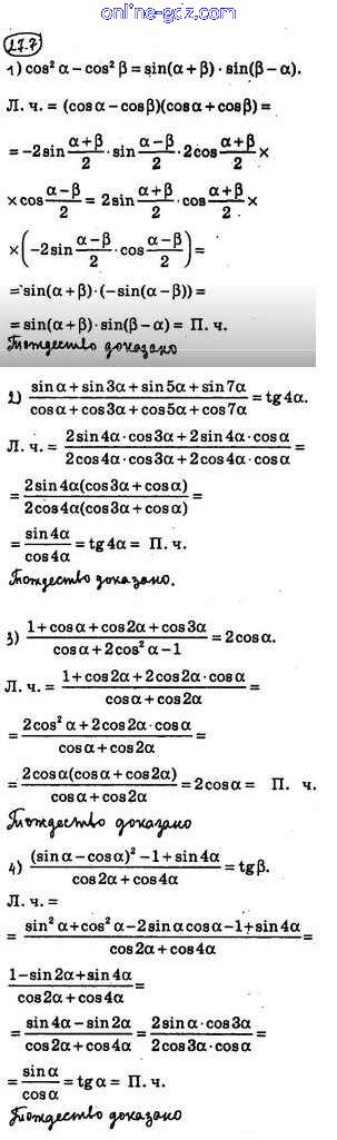 Готовые домашние задания по Алгебре за 10 класс Учебник Мерзляк, Номировский Алгоритм успеха Углубленный уровень 2019 - §27. Формулы для преобразования суммы, разности и произведения тригонометрических функций 27.7