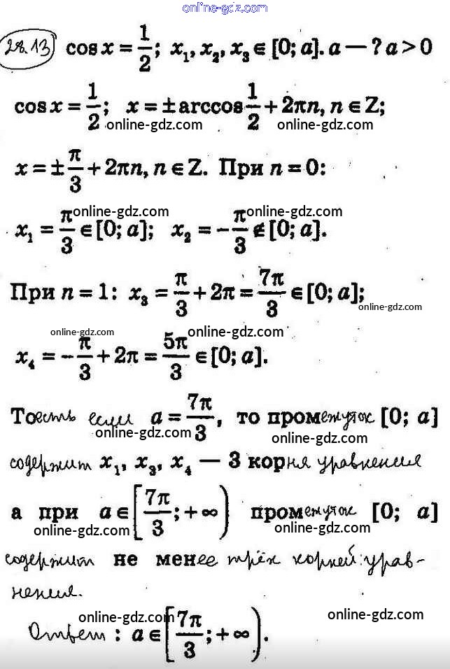 Готовые домашние задания по Алгебре за 10 класс Учебник Мерзляк, Номировский Алгоритм успеха Углубленный уровень 2019 - §28. Уравнение cosx = b 28.13