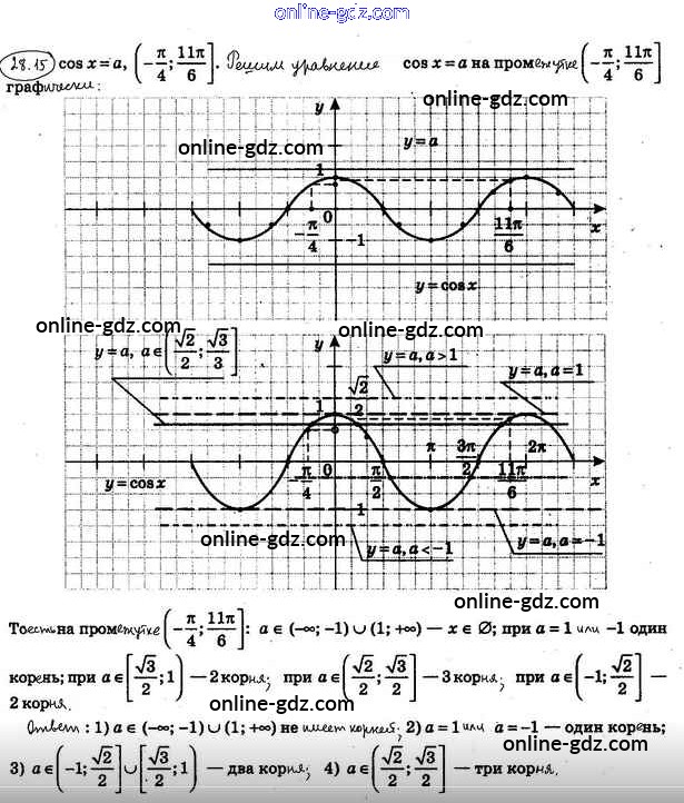 Готовые домашние задания по Алгебре за 10 класс Учебник Мерзляк, Номировский Алгоритм успеха Углубленный уровень 2019 - §28. Уравнение cosx = b 28.15