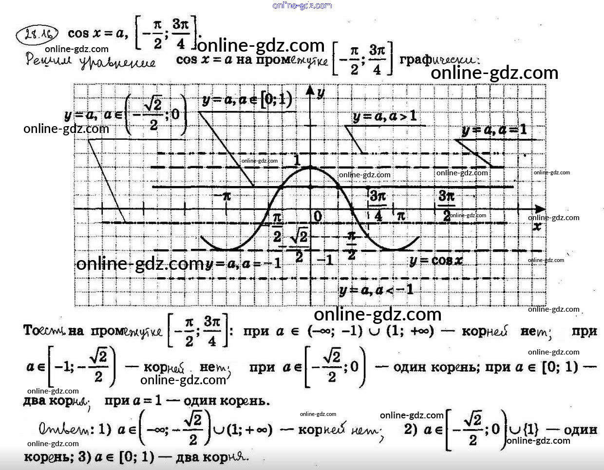 Готовые домашние задания по Алгебре за 10 класс Учебник Мерзляк, Номировский Алгоритм успеха Углубленный уровень 2019 - §28. Уравнение cosx = b 28.16
