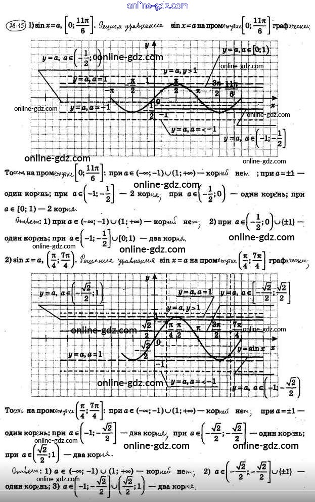 Готовые домашние задания по Алгебре за 10 класс Учебник Мерзляк, Номировский Алгоритм успеха Углубленный уровень 2019 - §29. Уравнение sinx = b 29.15