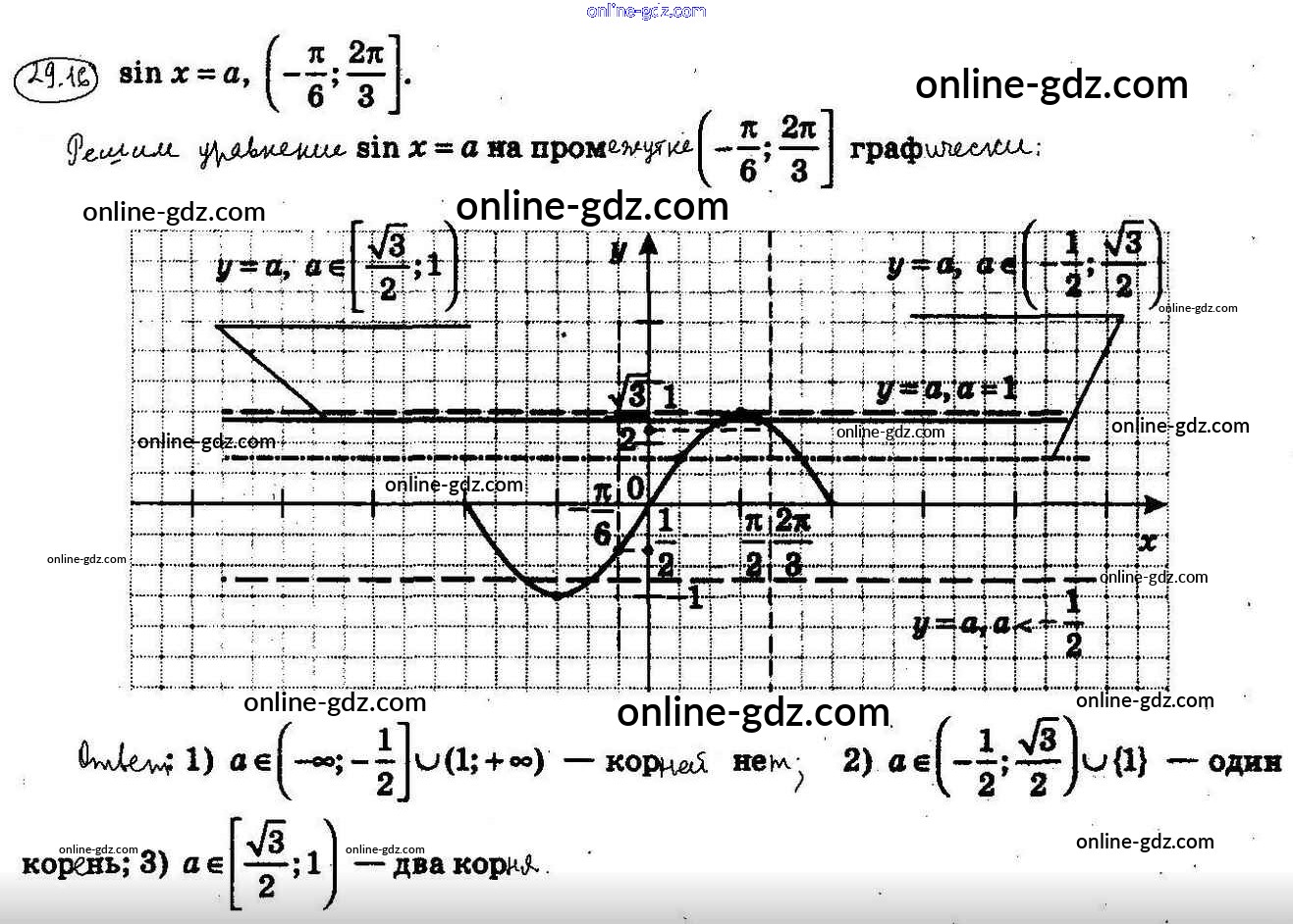 Готовые домашние задания по Алгебре за 10 класс Учебник Мерзляк, Номировский Алгоритм успеха Углубленный уровень 2019 - §29. Уравнение sinx = b 29.16