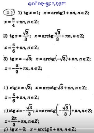 Готовые домашние задания по Алгебре за 10 класс Учебник Мерзляк, Номировский Алгоритм успеха Углубленный уровень 2019 - §30. Уравнение tgx = b, ctgx = b 30.2