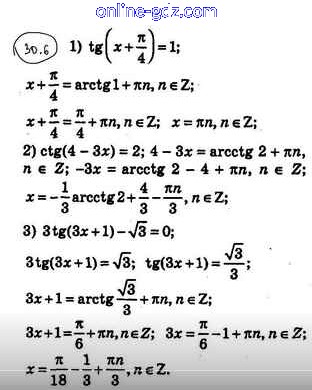 Готовые домашние задания по Алгебре за 10 класс Учебник Мерзляк, Номировский Алгоритм успеха Углубленный уровень 2019 - §30. Уравнение tgx = b, ctgx = b 30.6