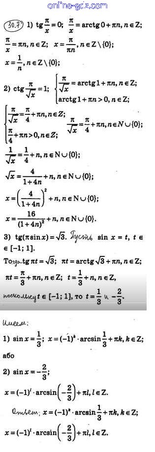 Готовые домашние задания по Алгебре за 10 класс Учебник Мерзляк, Номировский Алгоритм успеха Углубленный уровень 2019 - §30. Уравнение tgx = b, ctgx = b 30.7