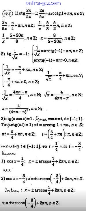 Готовые домашние задания по Алгебре за 10 класс Учебник Мерзляк, Номировский Алгоритм успеха Углубленный уровень 2019 - §30. Уравнение tgx = b, ctgx = b 30.8