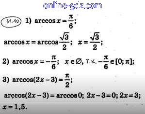 Готовые домашние задания по Алгебре за 10 класс Учебник Мерзляк, Номировский Алгоритм успеха Углубленный уровень 2019 - §31. Функции у = arccosx, y = arcsinx, у = arctgx и у = arcctgx 31.10