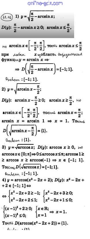 Готовые домашние задания по Алгебре за 10 класс Учебник Мерзляк, Номировский Алгоритм успеха Углубленный уровень 2019 - §31. Функции у = arccosx, y = arcsinx, у = arctgx и у = arcctgx 31.16