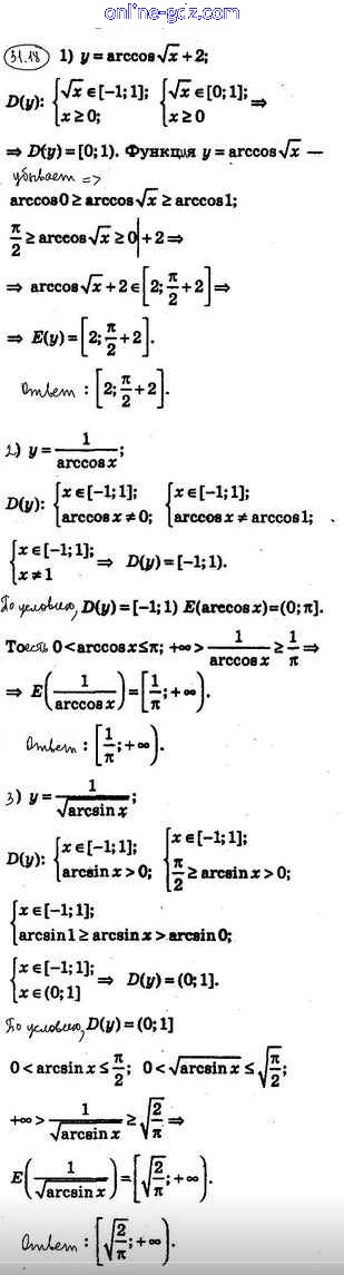 Готовые домашние задания по Алгебре за 10 класс Учебник Мерзляк, Номировский Алгоритм успеха Углубленный уровень 2019 - §31. Функции у = arccosx, y = arcsinx, у = arctgx и у = arcctgx 31.18