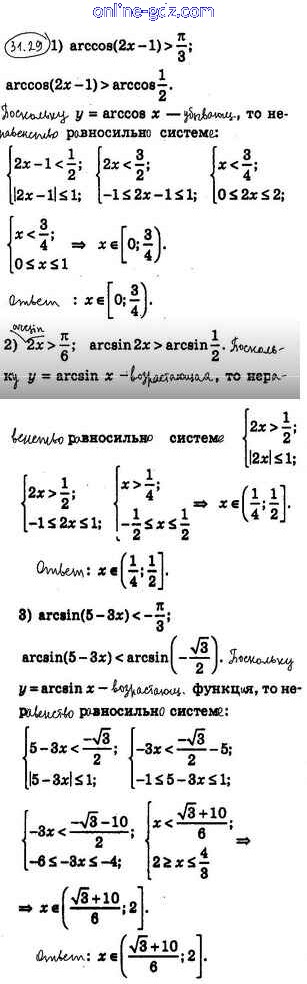 Готовые домашние задания по Алгебре за 10 класс Учебник Мерзляк, Номировский Алгоритм успеха Углубленный уровень 2019 - §31. Функции у = arccosx, y = arcsinx, у = arctgx и у = arcctgx 31.29