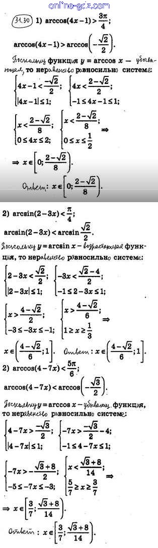 Готовые домашние задания по Алгебре за 10 класс Учебник Мерзляк, Номировский Алгоритм успеха Углубленный уровень 2019 - §31. Функции у = arccosx, y = arcsinx, у = arctgx и у = arcctgx 31.30