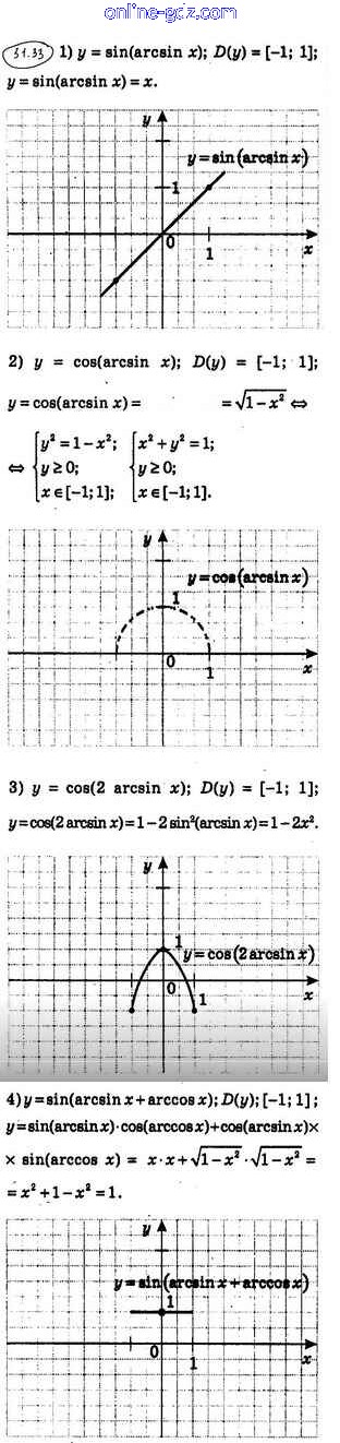 Готовые домашние задания по Алгебре за 10 класс Учебник Мерзляк, Номировский Алгоритм успеха Углубленный уровень 2019 - §31. Функции у = arccosx, y = arcsinx, у = arctgx и у = arcctgx 31.33