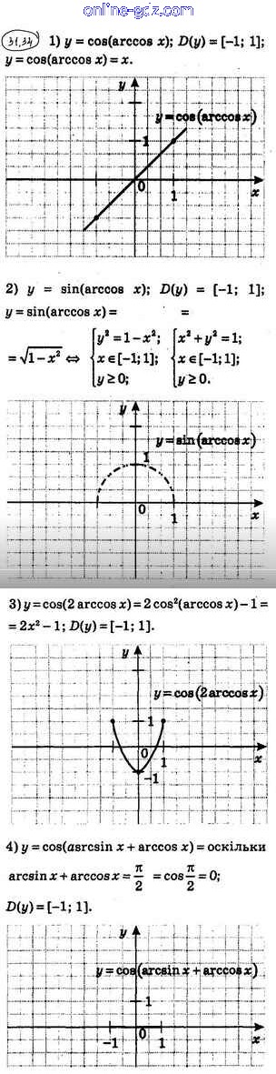 Готовые домашние задания по Алгебре за 10 класс Учебник Мерзляк, Номировский Алгоритм успеха Углубленный уровень 2019 - §31. Функции у = arccosx, y = arcsinx, у = arctgx и у = arcctgx 31.34