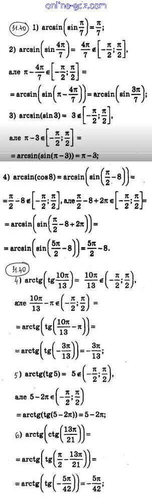 Готовые домашние задания по Алгебре за 10 класс Учебник Мерзляк, Номировский Алгоритм успеха Углубленный уровень 2019 - §31. Функции у = arccosx, y = arcsinx, у = arctgx и у = arcctgx 31.40