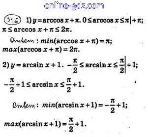 Готовые домашние задания по Алгебре за 10 класс Учебник Мерзляк, Номировский Алгоритм успеха Углубленный уровень 2019 - §31. Функции у = arccosx, y = arcsinx, у = arctgx и у = arcctgx 31.6