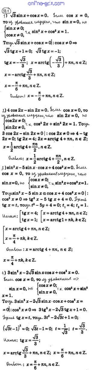 Готовые домашние задания по Алгебре за 10 класс Учебник Мерзляк, Номировский Алгоритм успеха Углубленный уровень 2019 - §32. Тригонометрические уравнения, сводящиеся к алгебраическим 32.1