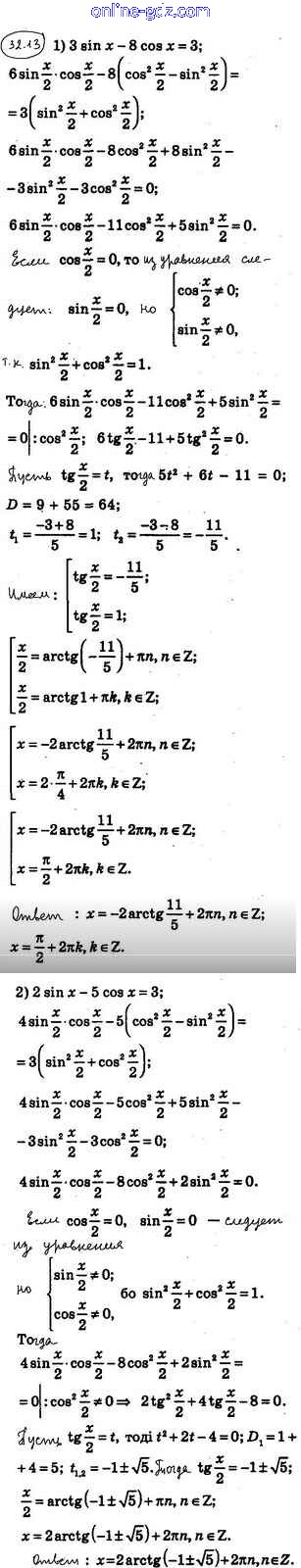 Готовые домашние задания по Алгебре за 10 класс Учебник Мерзляк, Номировский Алгоритм успеха Углубленный уровень 2019 - §32. Тригонометрические уравнения, сводящиеся к алгебраическим 32.13