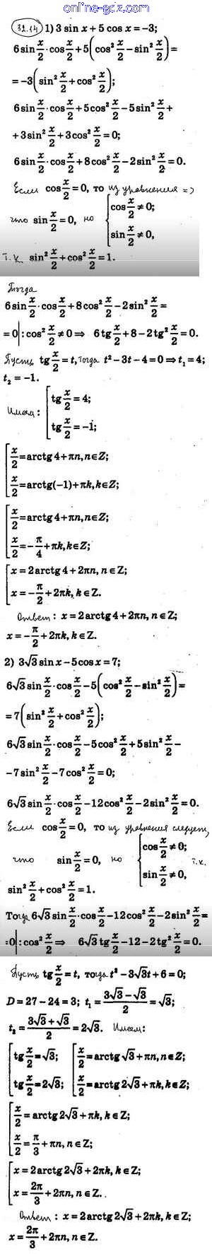 §32. Тригонометрические уравнения, сводящиеся к алгебраическим