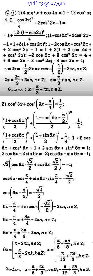Готовые домашние задания по Алгебре за 10 класс Учебник Мерзляк, Номировский Алгоритм успеха Углубленный уровень 2019 - §32. Тригонометрические уравнения, сводящиеся к алгебраическим 32.16