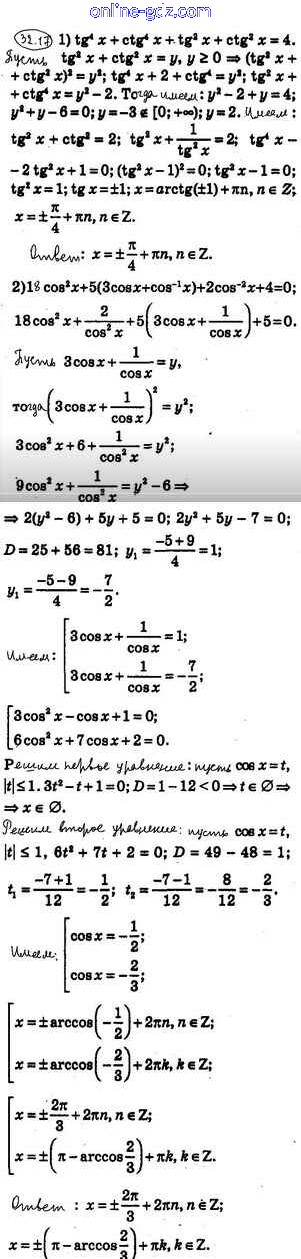 Готовые домашние задания по Алгебре за 10 класс Учебник Мерзляк, Номировский Алгоритм успеха Углубленный уровень 2019 - §32. Тригонометрические уравнения, сводящиеся к алгебраическим 32.17