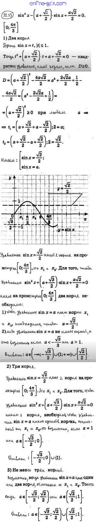 Готовые домашние задания по Алгебре за 10 класс Учебник Мерзляк, Номировский Алгоритм успеха Углубленный уровень 2019 - §32. Тригонометрические уравнения, сводящиеся к алгебраическим 32.33