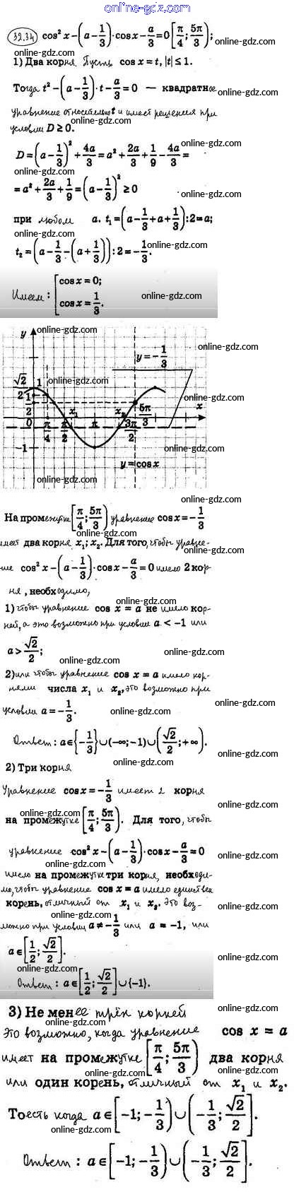 Готовые домашние задания по Алгебре за 10 класс Учебник Мерзляк, Номировский Алгоритм успеха Углубленный уровень 2019 - §32. Тригонометрические уравнения, сводящиеся к алгебраическим 32.34