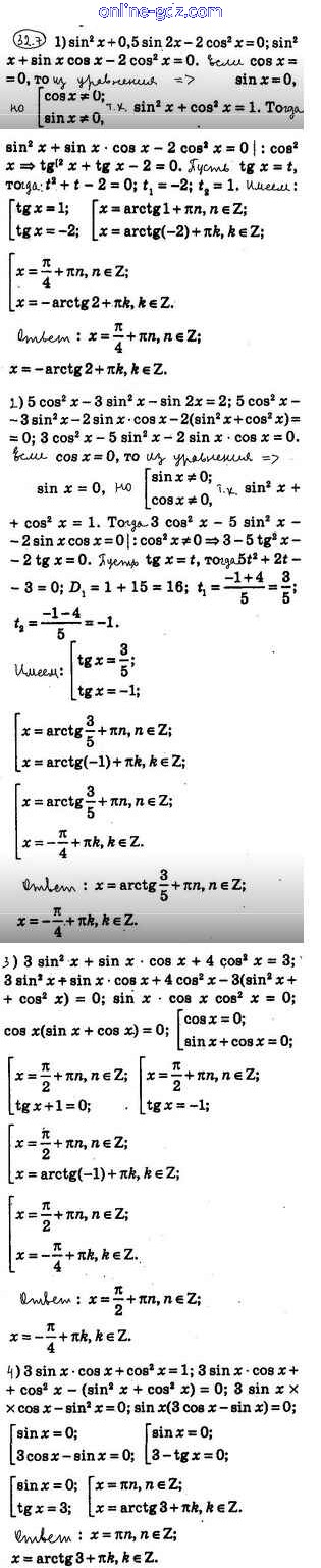 §32. Тригонометрические уравнения, сводящиеся к алгебраическим