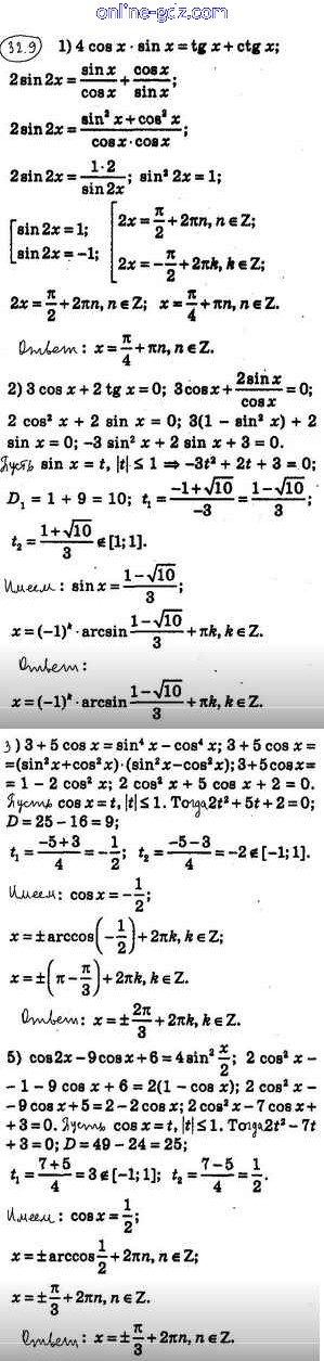 Готовые домашние задания по Алгебре за 10 класс Учебник Мерзляк, Номировский Алгоритм успеха Углубленный уровень 2019 - §32. Тригонометрические уравнения, сводящиеся к алгебраическим 32.9