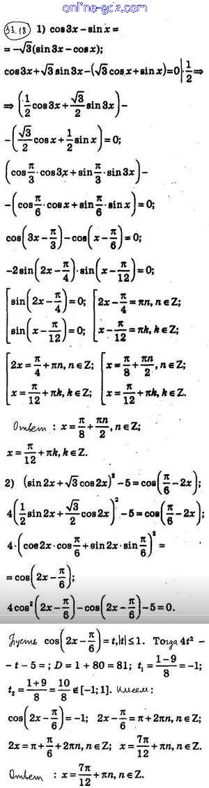 Готовые домашние задания по Алгебре за 10 класс Учебник Мерзляк, Номировский Алгоритм успеха Углубленный уровень 2019 - §33. Решение тригонометрических уравнений методом разложения на множители. Применение ограниченности тригонометрических функций 33.18