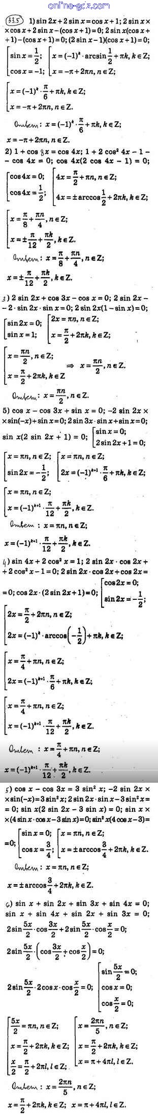 Готовые домашние задания по Алгебре за 10 класс Учебник Мерзляк, Номировский Алгоритм успеха Углубленный уровень 2019 - §33. Решение тригонометрических уравнений методом разложения на множители. Применение ограниченности тригонометрических функций 33.5