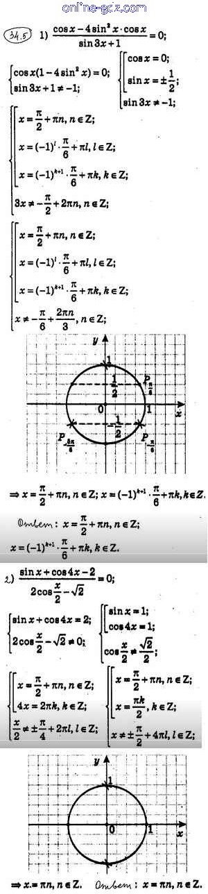 Готовые домашние задания по Алгебре за 10 класс Учебник Мерзляк, Номировский Алгоритм успеха Углубленный уровень 2019 - §34. О равносильных переходах при решении тригонометрических уравнений 34.5