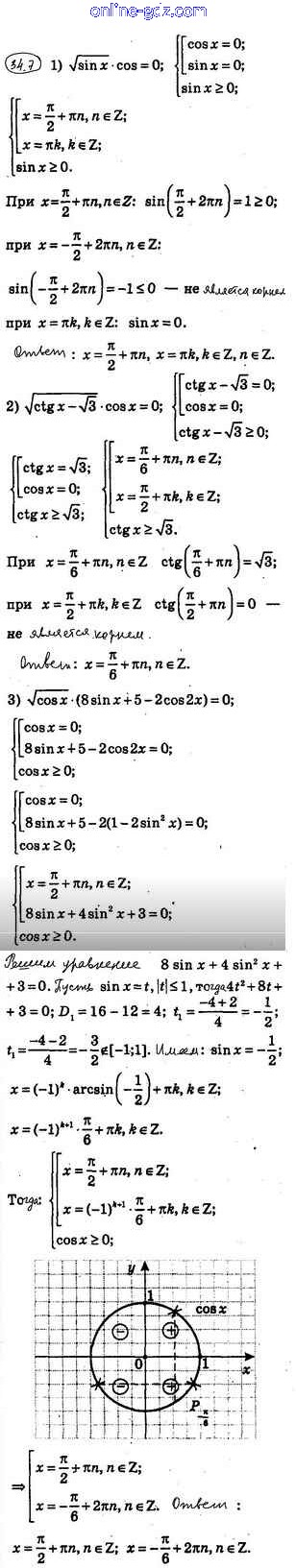 Готовые домашние задания по Алгебре за 10 класс Учебник Мерзляк, Номировский Алгоритм успеха Углубленный уровень 2019 - §34. О равносильных переходах при решении тригонометрических уравнений 34.7