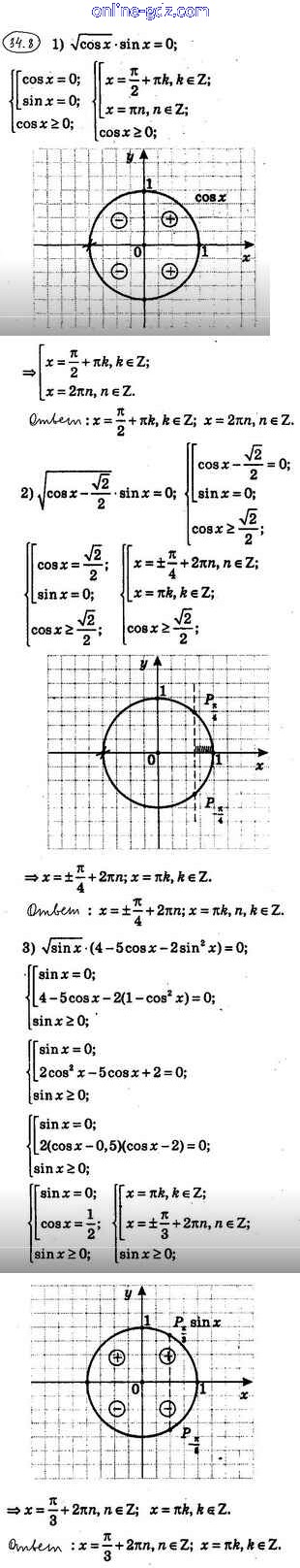Готовые домашние задания по Алгебре за 10 класс Учебник Мерзляк, Номировский Алгоритм успеха Углубленный уровень 2019 - §34. О равносильных переходах при решении тригонометрических уравнений 34.8