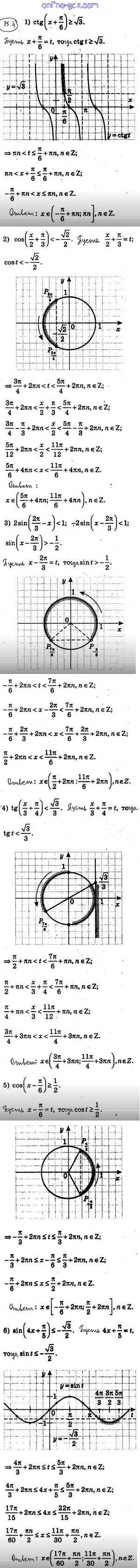 Готовые домашние задания по Алгебре за 10 класс Учебник Мерзляк, Номировский Алгоритм успеха Углубленный уровень 2019 - §35. Тригонометрические неравенства 35.4