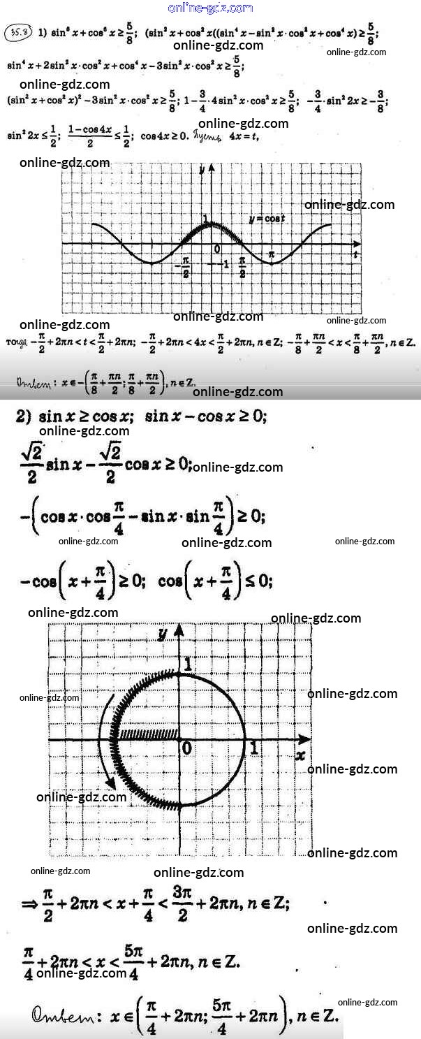 Готовые домашние задания по Алгебре за 10 класс Учебник Мерзляк, Номировский Алгоритм успеха Углубленный уровень 2019 - §35. Тригонометрические неравенства 35.8