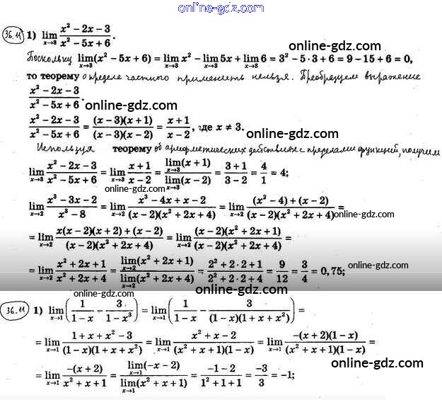 Готовые домашние задания по Алгебре за 10 класс Учебник Мерзляк, Номировский Алгоритм успеха Углубленный уровень 2019 - §36. Определение предела функции в точке и функции, непрерывной в точке 36.11
