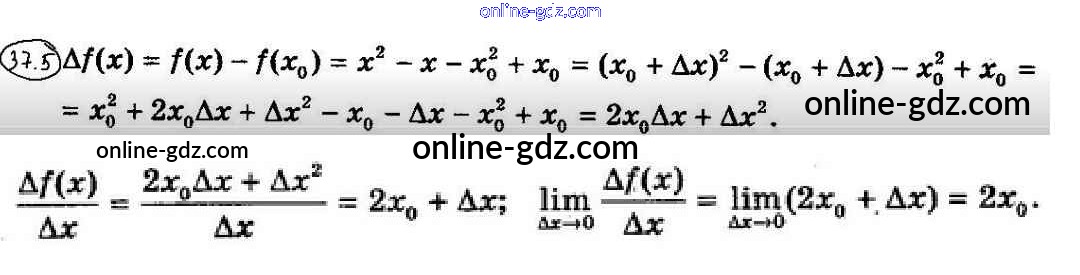 Готовые домашние задания по Алгебре за 10 класс Учебник Мерзляк, Номировский Алгоритм успеха Углубленный уровень 2019 - §37. Задачи о мгновенной скорости и касательной к графику функции 37.5