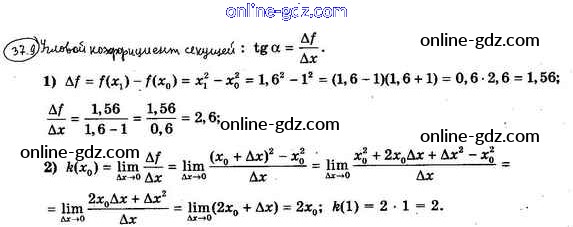 Готовые домашние задания по Алгебре за 10 класс Учебник Мерзляк, Номировский Алгоритм успеха Углубленный уровень 2019 - §37. Задачи о мгновенной скорости и касательной к графику функции 37.9