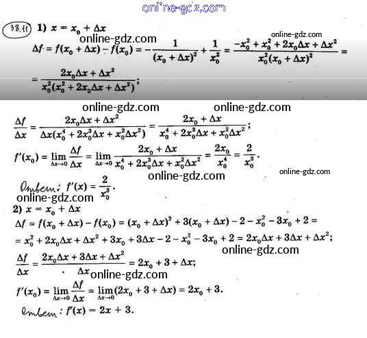 Готовые домашние задания по Алгебре за 10 класс Учебник Мерзляк, Номировский Алгоритм успеха Углубленный уровень 2019 - §38. Понятие производной 38.11