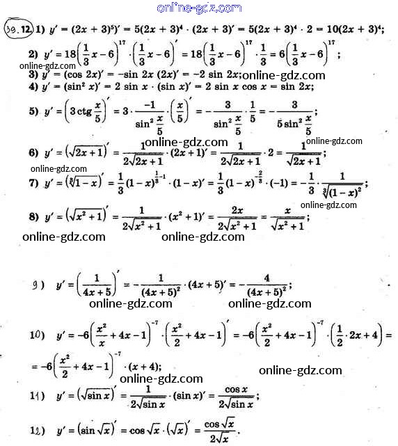 Готовые домашние задания по Алгебре за 10 класс Учебник Мерзляк, Номировский Алгоритм успеха Углубленный уровень 2019 - §39. Правила вычисления производных 39.12