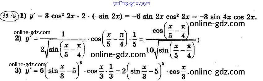 Готовые домашние задания по Алгебре за 10 класс Учебник Мерзляк, Номировский Алгоритм успеха Углубленный уровень 2019 - §39. Правила вычисления производных 39.16