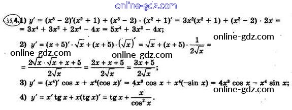 Готовые домашние задания по Алгебре за 10 класс Учебник Мерзляк, Номировский Алгоритм успеха Углубленный уровень 2019 - §39. Правила вычисления производных 39.4