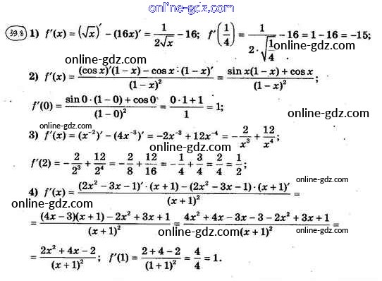 Готовые домашние задания по Алгебре за 10 класс Учебник Мерзляк, Номировский Алгоритм успеха Углубленный уровень 2019 - §39. Правила вычисления производных 39.8